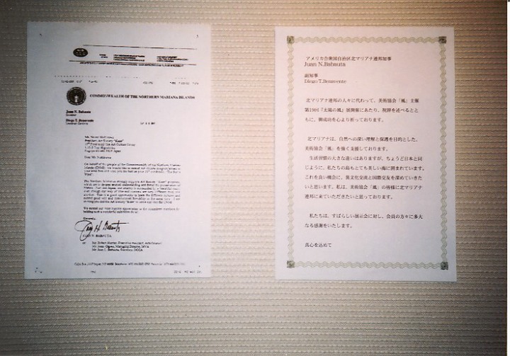 北マリアナ連邦の人々に代わって、美術協会「風」主催第19回『太陽の風』展開催にあたり、