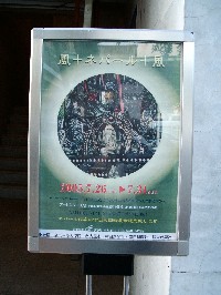 | 黄色の壁が印象的なギャラリー | 入り口には「風+ネパール+風」展のポスター |