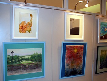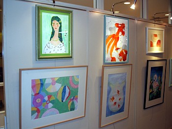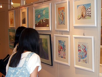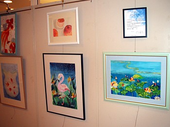 | 水彩・アクリル絵具など、繊細に描かれた作品に見入る 若い人達の姿も目立ちました。  |  |