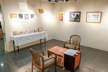 |  | 上:小品を50点展示 左:大村秀章愛知県知事・鈴木英敬三重県知事・ 駐日ミャンマー連邦共和国特命全権大使ミン・トゥ様 セルビア共和国大使館臨時代理大使イヴァナ・ゴルボヴィッチ・ドゥボカ様 から届いたメッセージ |